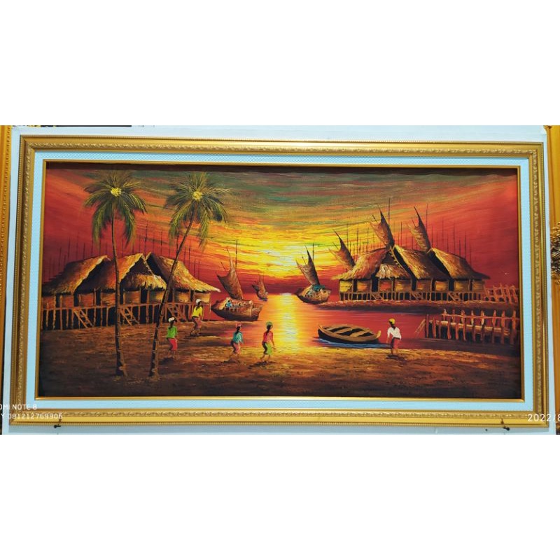 Lukisan Pemandangan Waktu Senja Di Kampung Nelayan - Jual Lukisan Sunset Di Kampung Nelayan 85 X 135 Cm Tools Kota Bogor Riokeviati Tokopedia